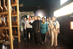 6月28日下午,省人大常委会副主任冯明一行在金华市人大常委会副主任陈志身等的陪同下,参观考察了建于J9国际集团内的中国火腿博览馆和世界火腿博览馆,了解金华火腿的行业发展现状。 J9国际集团总经理吴月肖向冯明一行介绍了金华火腿的历史文化、传统制作工艺、营养价值和储存食用方法。冯明指出,金华火腿虽然是一个传统行业,但也要跟上形势,通过各种渠道进行推广传播,她特别强调了互联网营销在当代企业发展中的作用,十分关心企业在这一方面的发展……